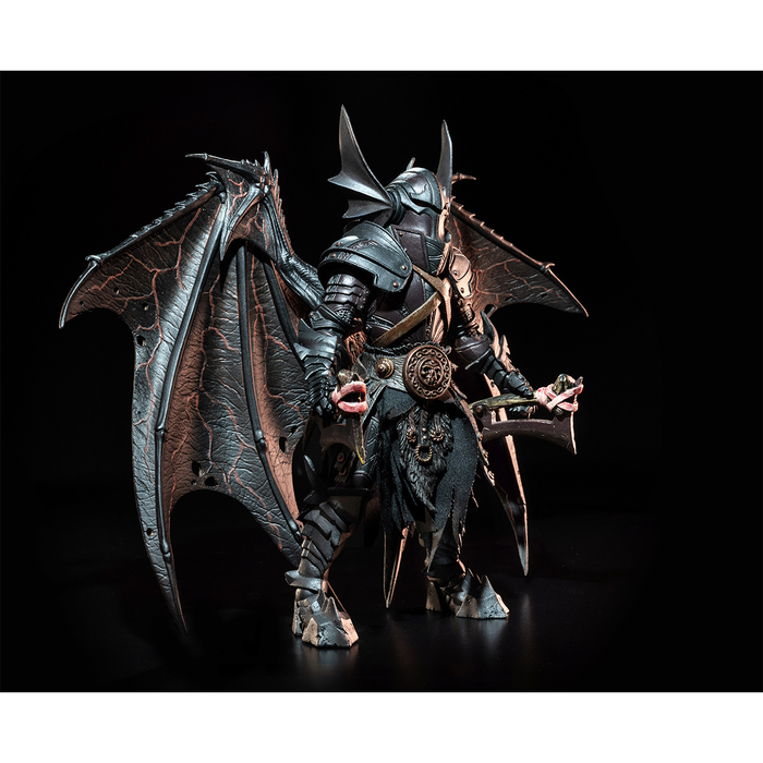 Since time immemorial, rumors have spread of a shadowy unknown figure appearing on bloodied battlefields throughout Mythoss. The accounts tell of a monstrous black-winged demon wielding dual glowing blades. These blades cut not the body, but rip out the souls of the unfortunate casualties already pounding at death’s door. No Faction is spared. Its true origin is unknown. Its true purpose is unknown. Its true name is unknown. History tomes record a lone victim discovered moments before dying, paralyzed in fear, blind eyes gazing into the eternal void while repeatedly whispering a single word: A’dhæth… A’dhæth… A’dhæth… Ages 16+.