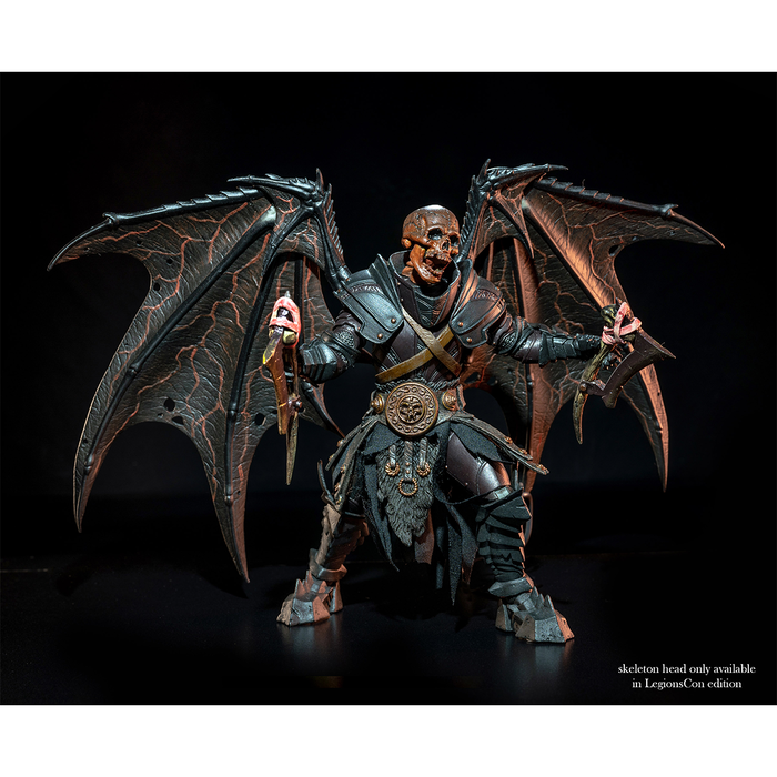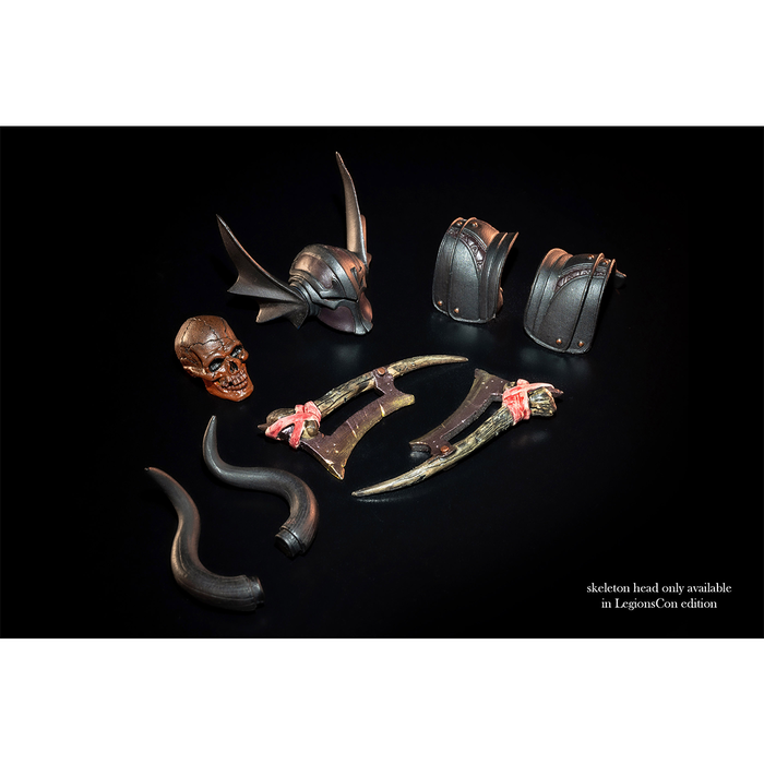 - The standard edition include the one helmeted head with 2 sets of attachments. The extra skeleton head/neck is only available in the LegionsCon edition